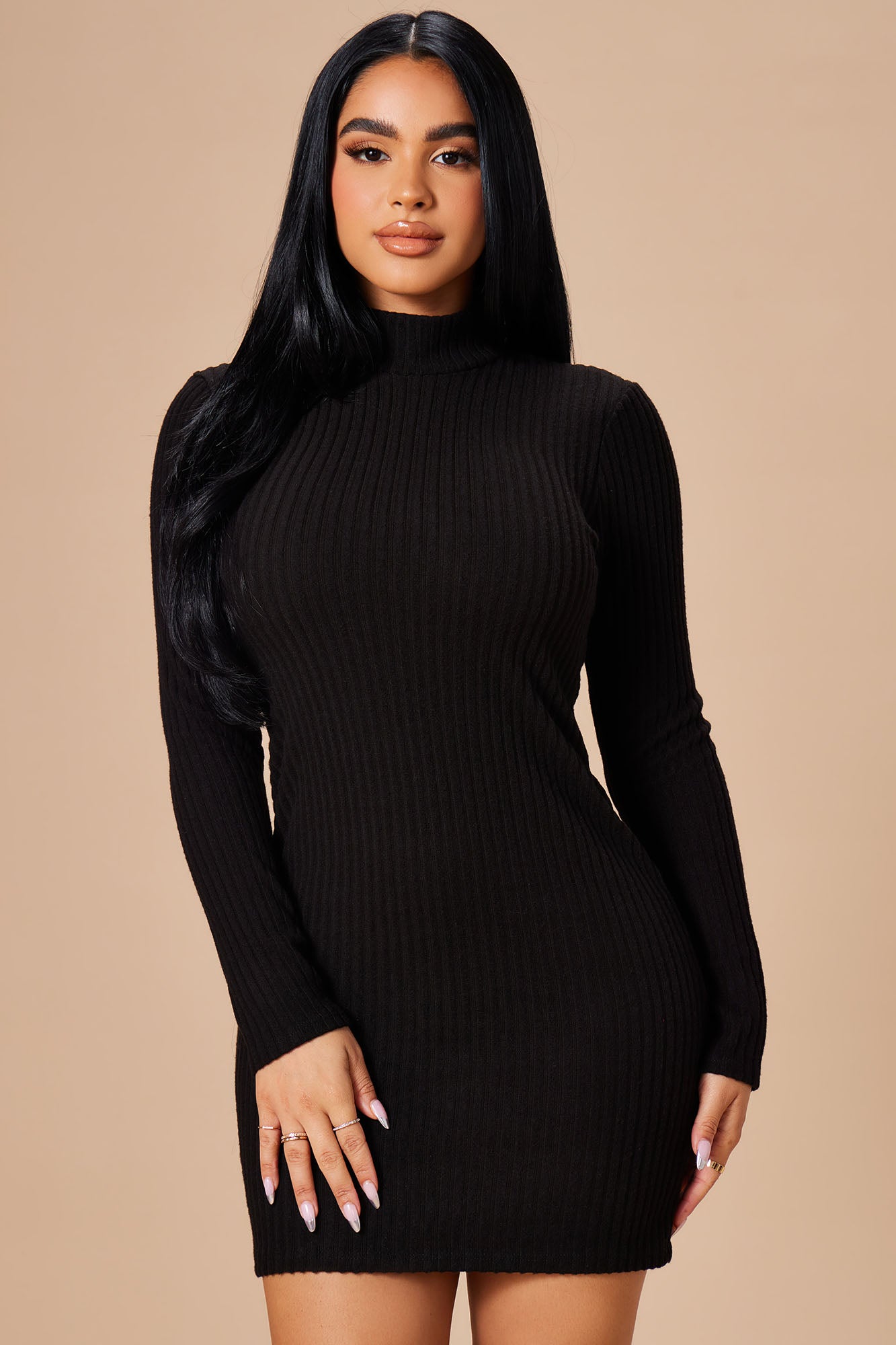 Make A Move Mock Neck Mini Dress - Black