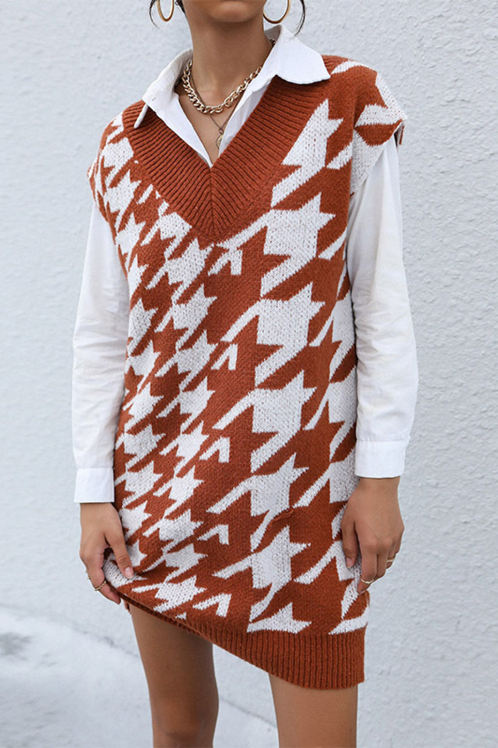 Large Scale Houndstooth Sweater Vest Dress