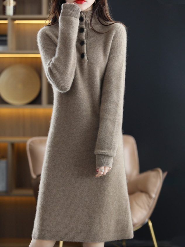 Plain Wool/Knitting Turtleneck Elegant Dress