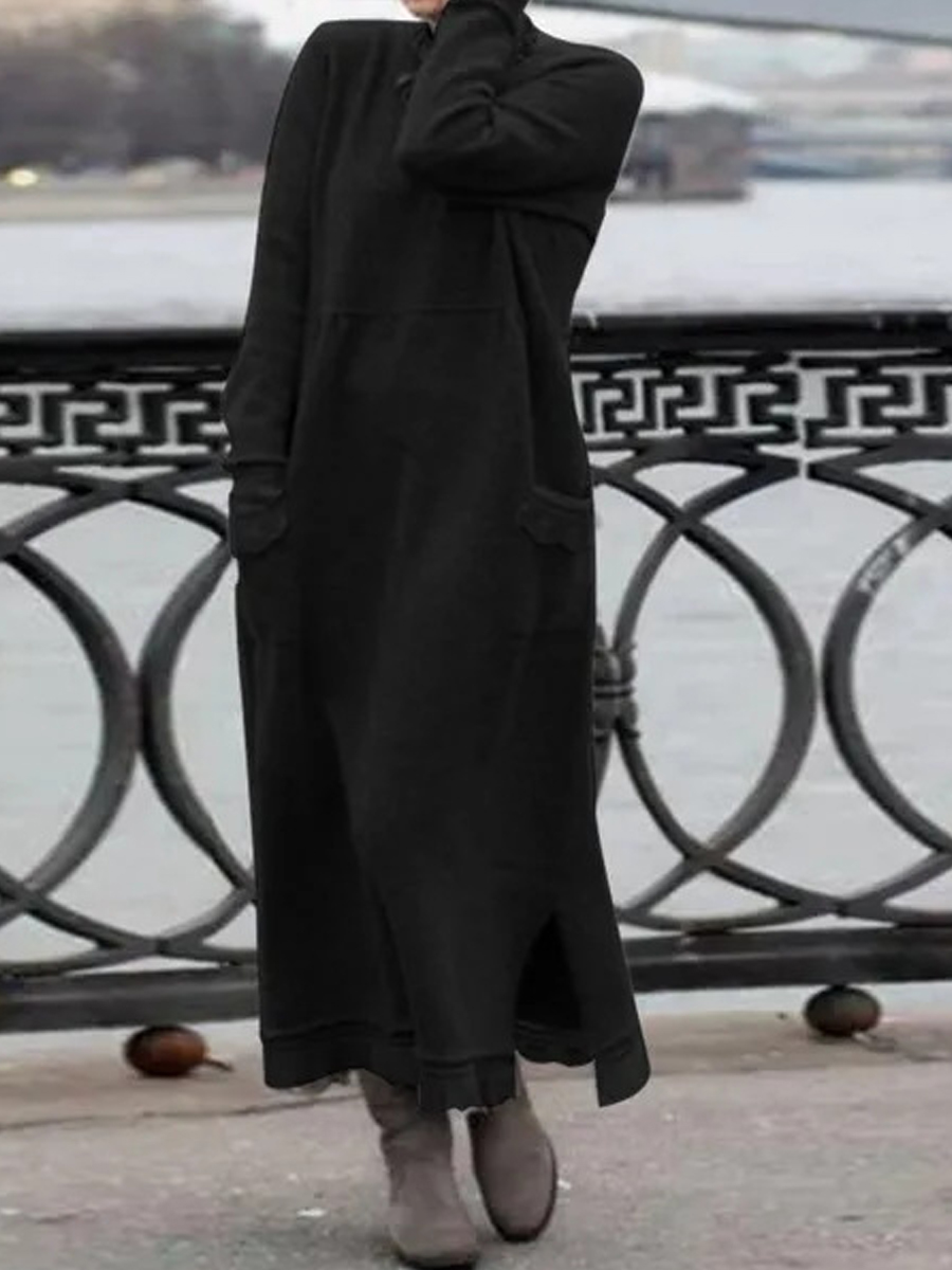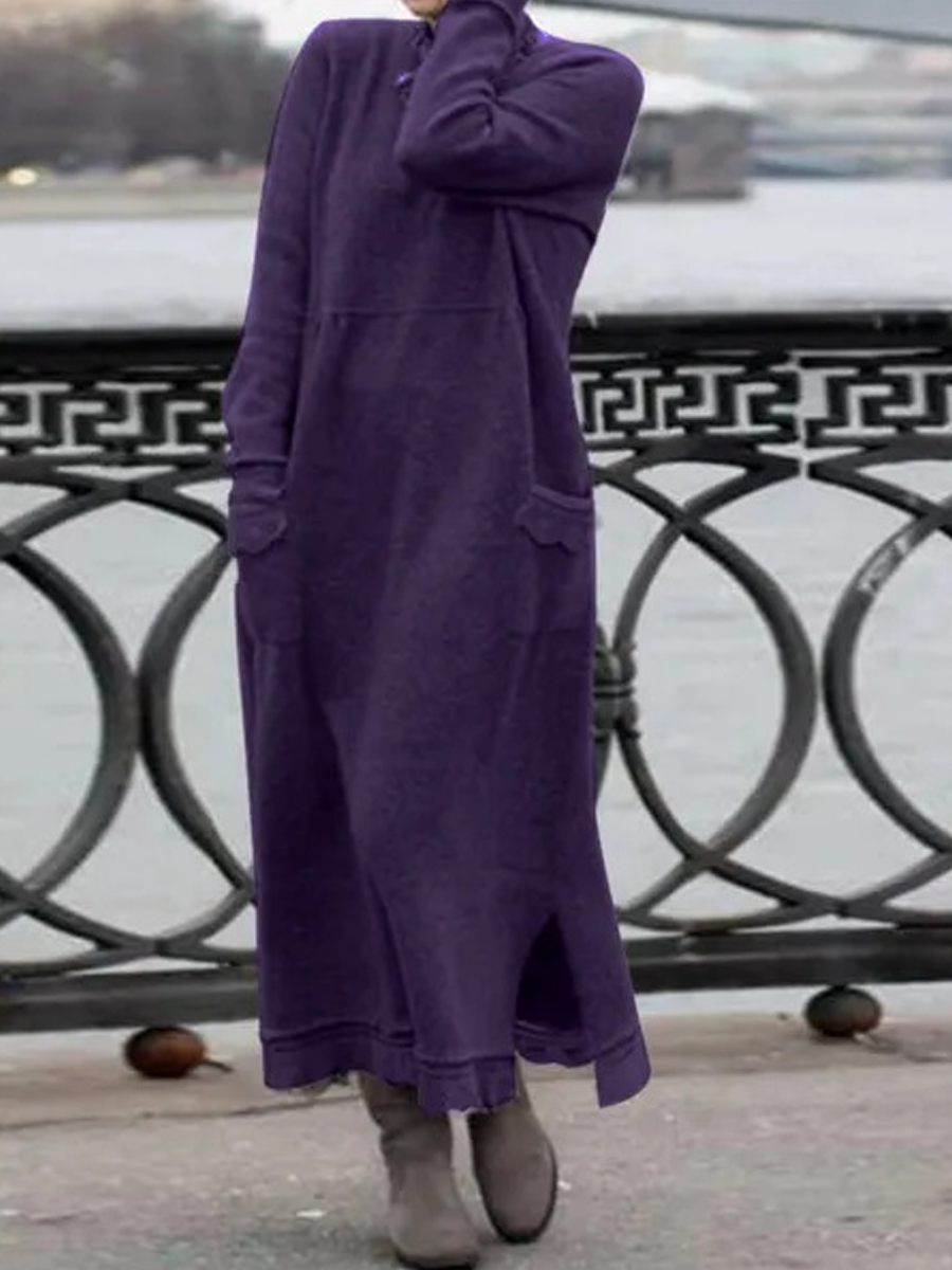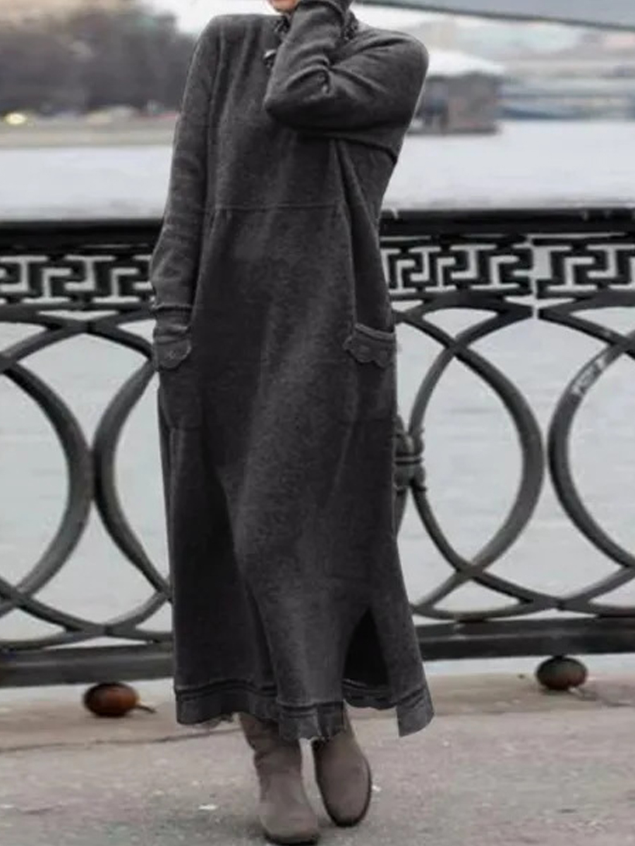 Casual Solid Color Pocket Long Sleeve Maxi Dress