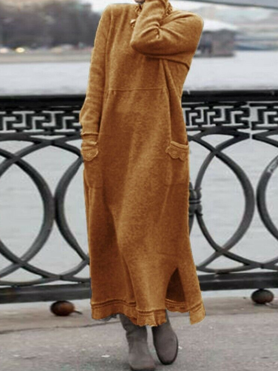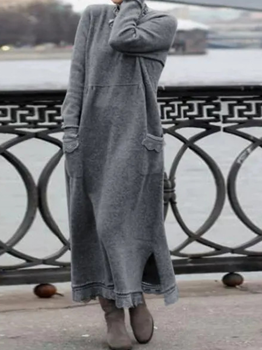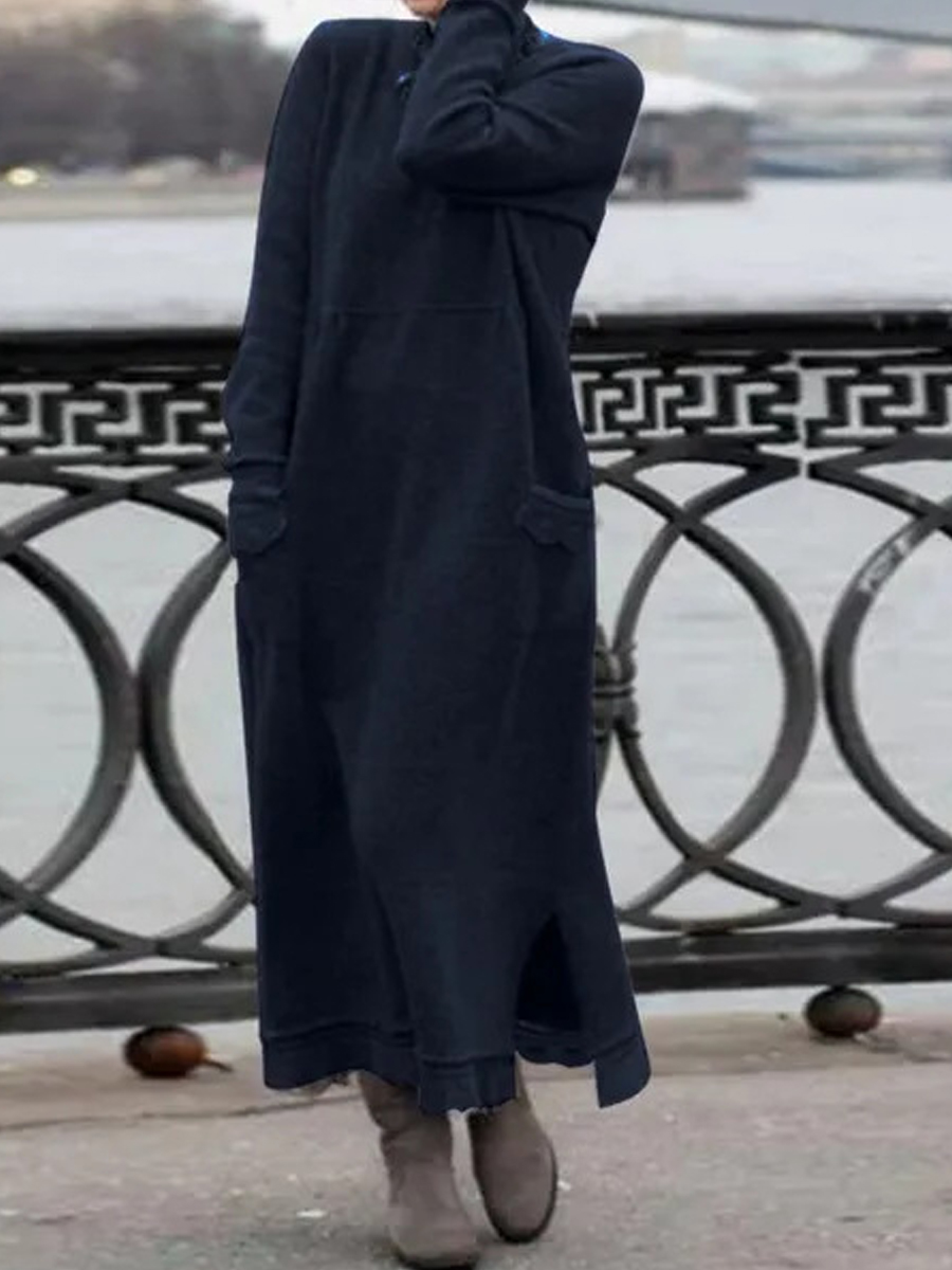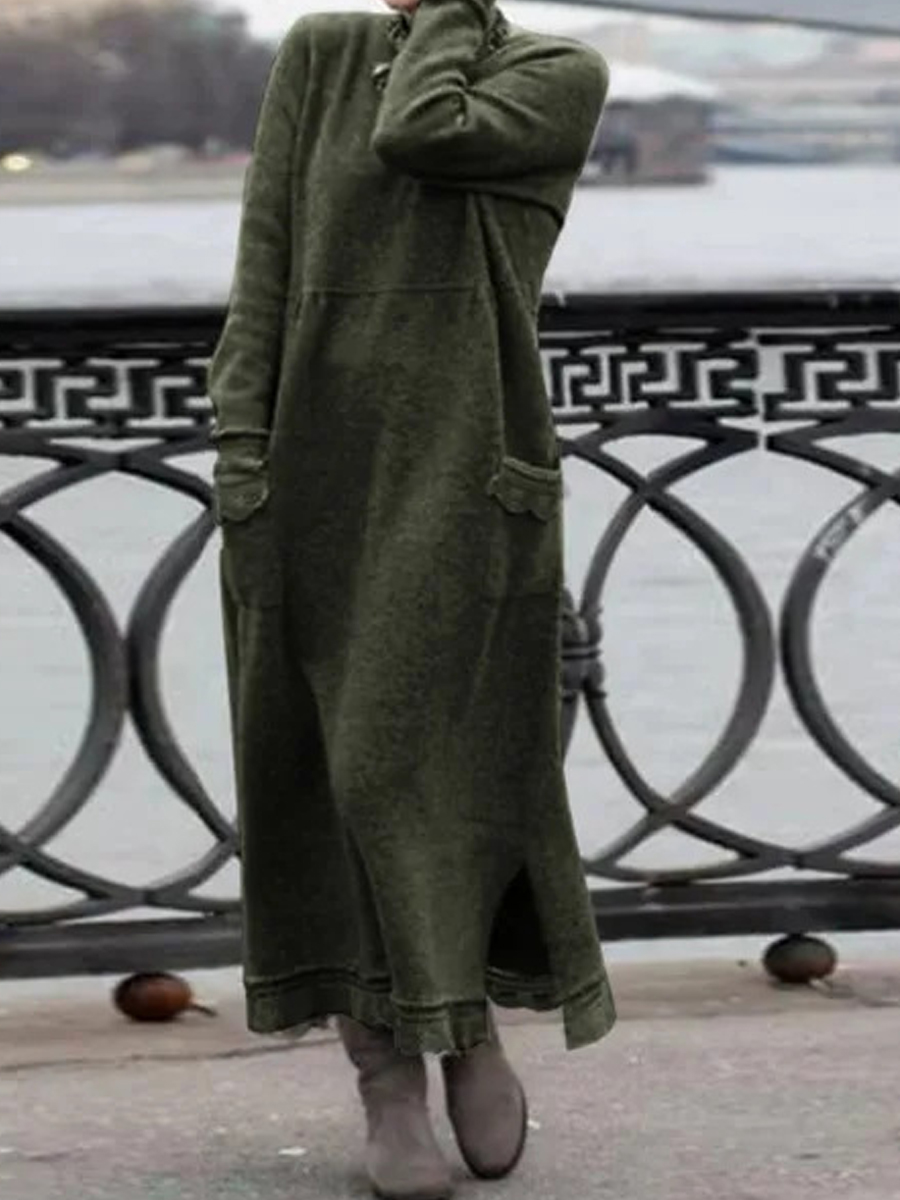 Casual Solid Color Pocket Long Sleeve Maxi Dress