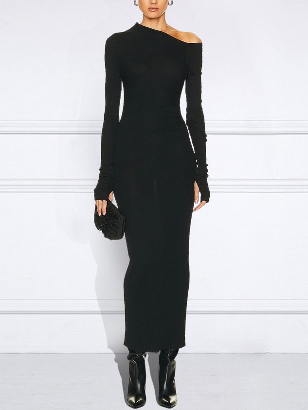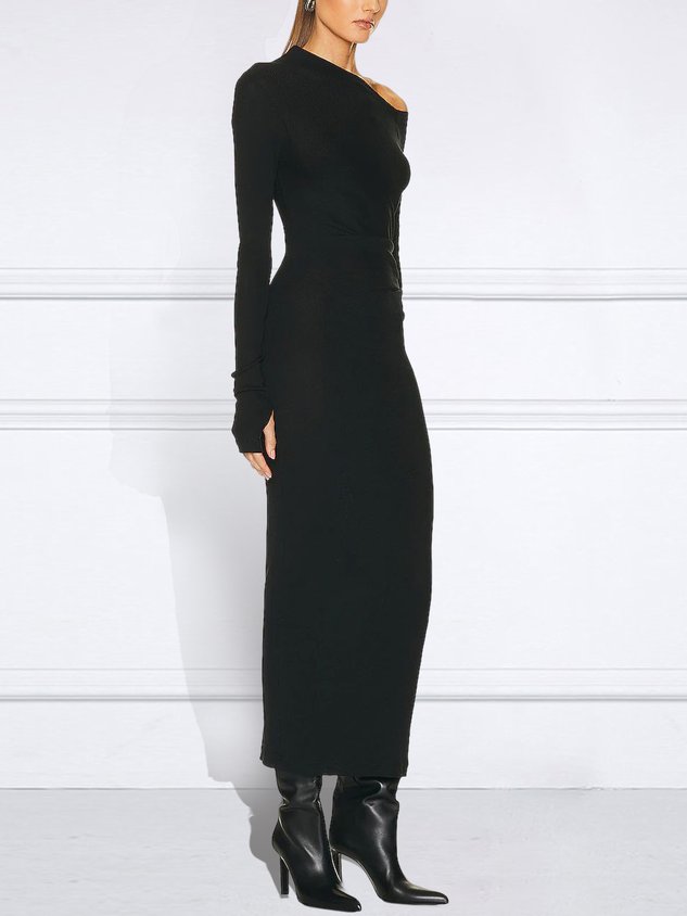 Long sleeve Asymmetrical Tight Elegant Plain Dress
